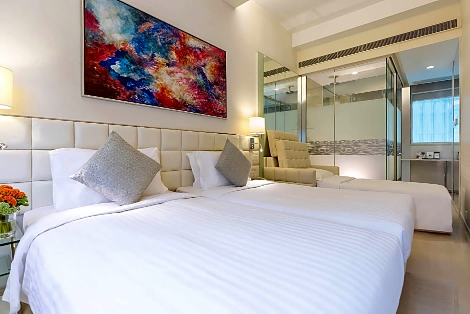 The 50- square yard suite features 2 bedrooms with 2 double beds, an individual bathroom and a separate living area. Guests enjoy below exclusive privileges per stay: - A bottle of red wine - Complimentary morning refreshments